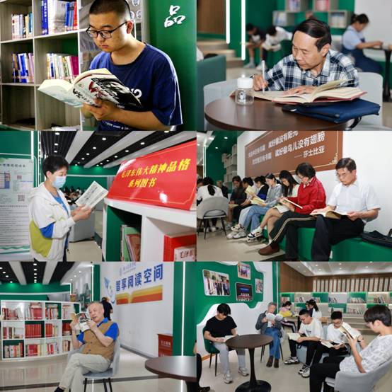 在图书馆一楼智享阅读空间陈列架上,整整齐齐摆放着“毛泽东伟大精神品格系列图书”专架,师生们自行选择毛泽东著作等相关书籍认真阅览。图书馆馆长陈玉顺介绍了图书馆智享阅读空间和电子阅览技术,在4.23世界读书日来临之际还会开展更多读书活动。