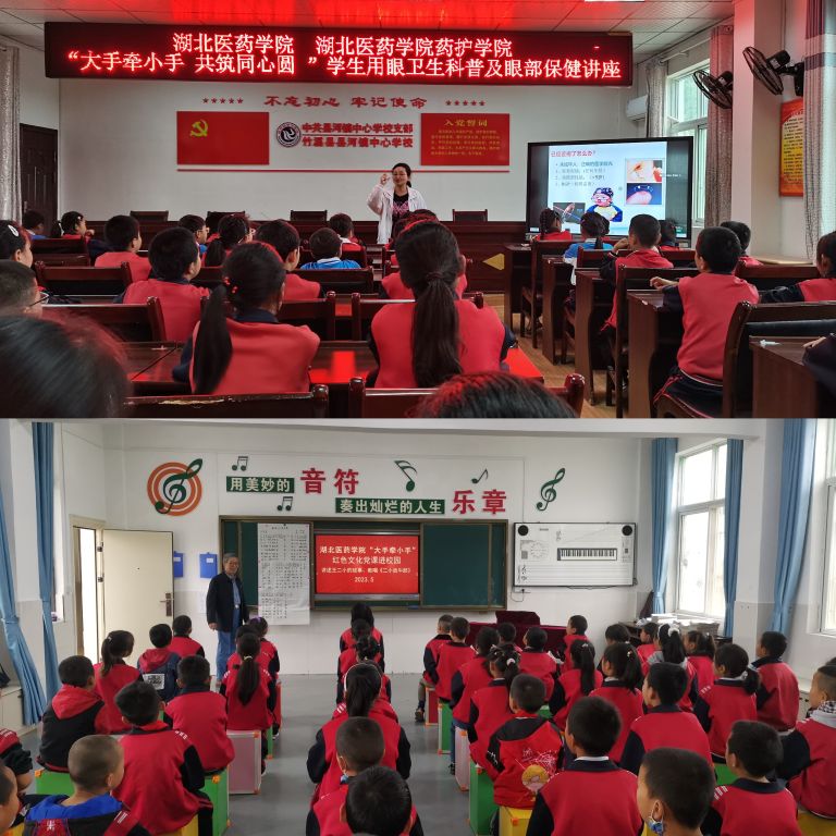 捐赠仪式结束后,校关工委老干部李加芙教授和眼科专家许玲教授为县河中心学校学生讲述红色文化党课和少年儿童近视防治讲座。李加芙教授以王二小的故事,教唱《二小放牛郎》声情并茂的向同学们讲述革命英雄故事,以红色基因启智铸魂,引导青少年学生学习革命烈士不畏艰难、顽强抗争的红色精神,珍惜现在和平幸福的生活,从小立下大志向,成为祖国未来的栋梁之才。许玲教授为同学们开展了《少年儿童近视防治讲座》,许教授用生动的语言,详细地讲解了眼睛的构造及眼睛近视的基本知识、如何预防近视,对学生提出的问题细致耐心地解答。