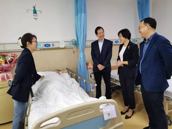 在病床前,校领导向陈怡敏教授表达诚挚的关心和问候,详细向医生询问了陈怡敏教授的病情及治疗情况,感谢陈怡敏教授为学校事业所作的努力和贡献,嘱咐要保持乐观心态,积极治疗,安心养病,并祝愿陈老早日康复。