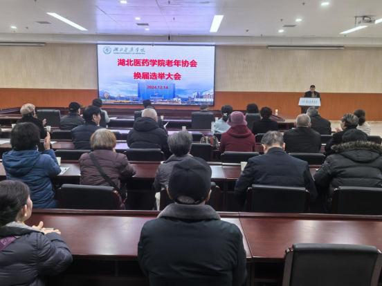 本网讯(图/张忠红 文/王雨)12月14日下午,湖北医药学院老年协会换届选举大会在科教楼一楼多功能举行。校党委常委、副校长严世荣,上届老年会协理事、新一届理事候选人选、离退休职工代表等50余人参加会议。
