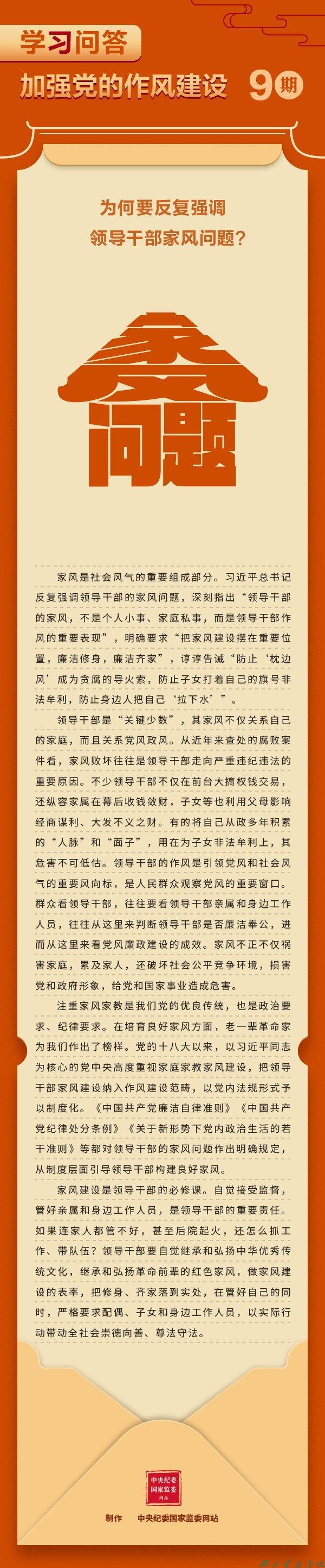 【学习教育】学习问答•加强党的作风建设⑨为何要反复强调领导干部家风问题?